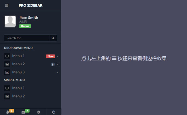 简介:jquery和bootstrap隐藏侧边栏菜单代码,依赖于bootstrap3和malihu滚动条美化插件,可以在桌面浏览器和移动手机上正常工作。